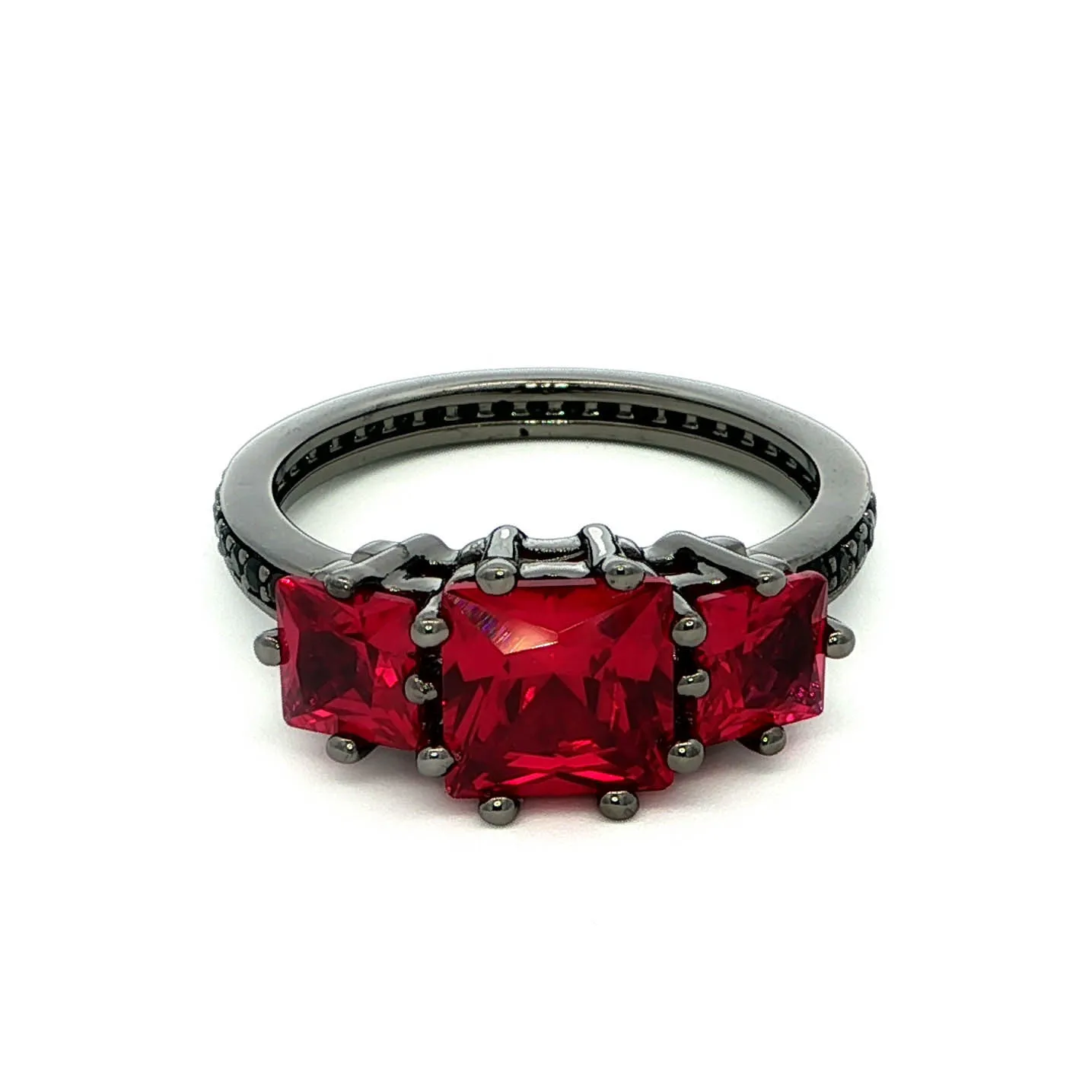 Ruby with Dark Sapphire, Ruthenium Plated