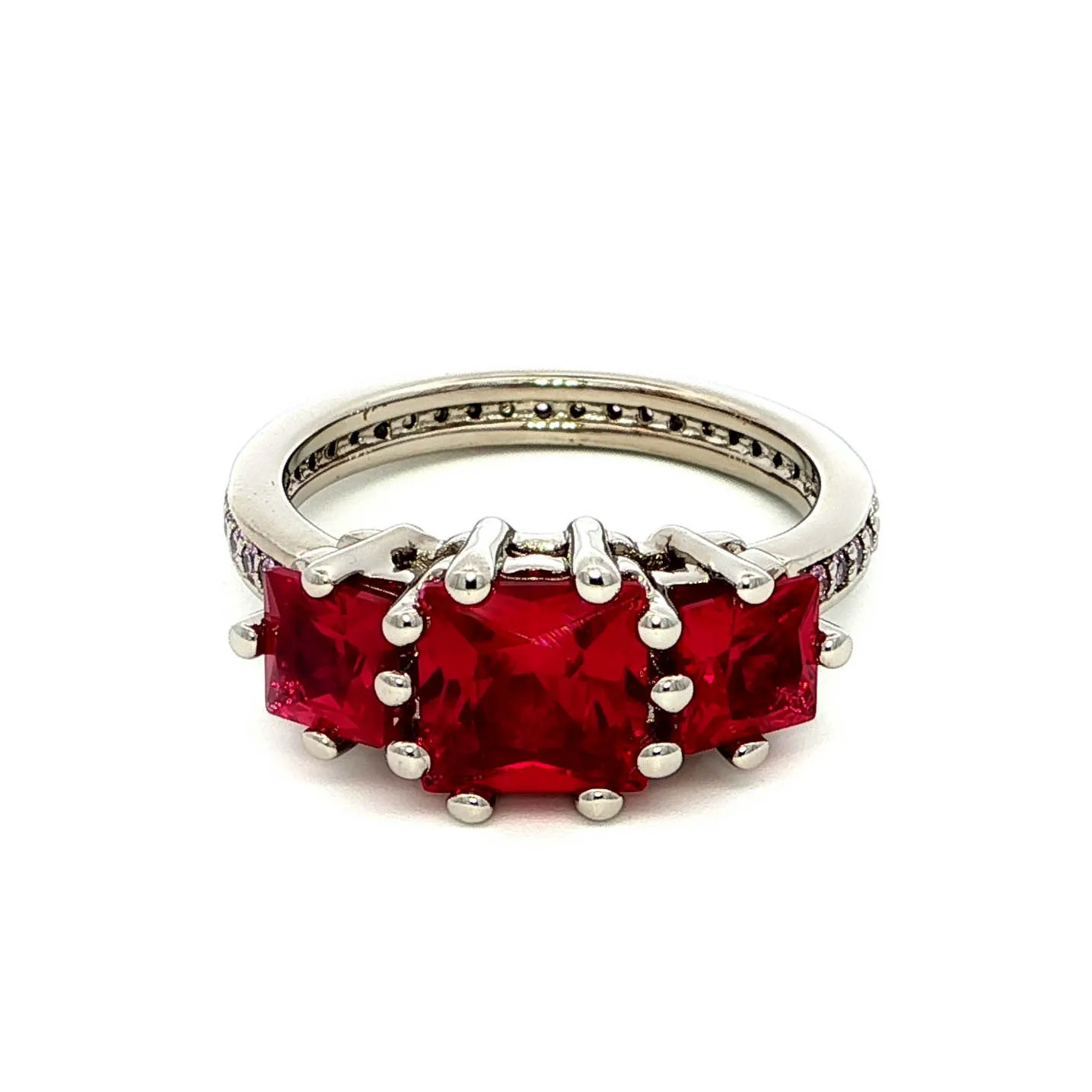 Ruby with White American Diamond, Platinum Plated