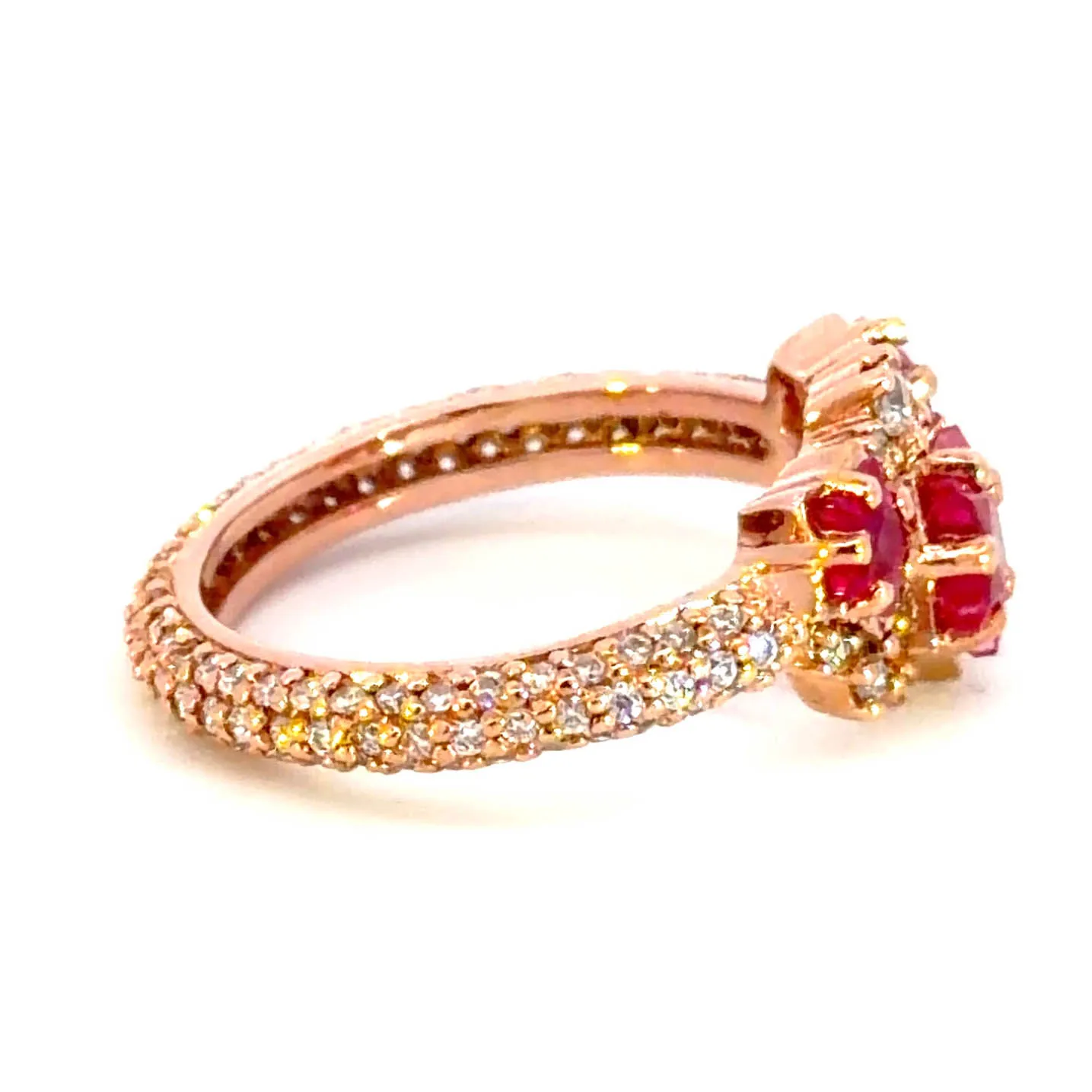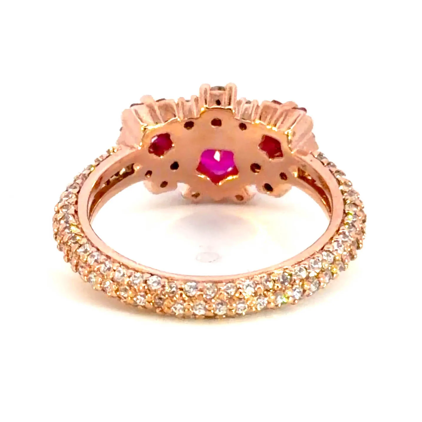 Exquisite cocktail ring featuring a vibrant, red ruby gemstone cut in a star shape with a mixed cutting style. Set in elegant rose gold, this statement piece radiates warmth and sophistication. The ruby’s captivating hue and the rose gold’s gentle sheen create a harmonious blend of luxury and unique design, perfect for adding a touch of glamour to any ensemble.