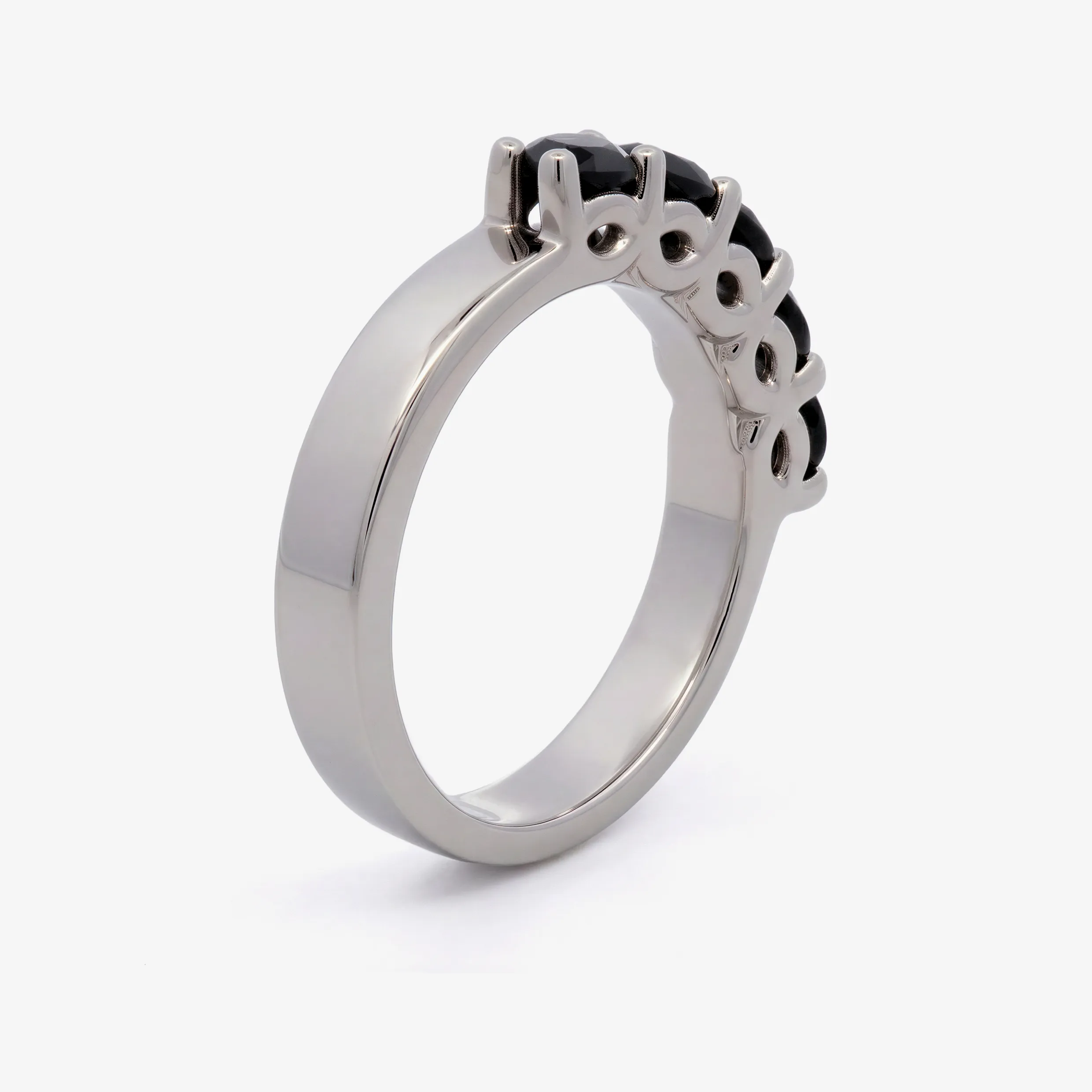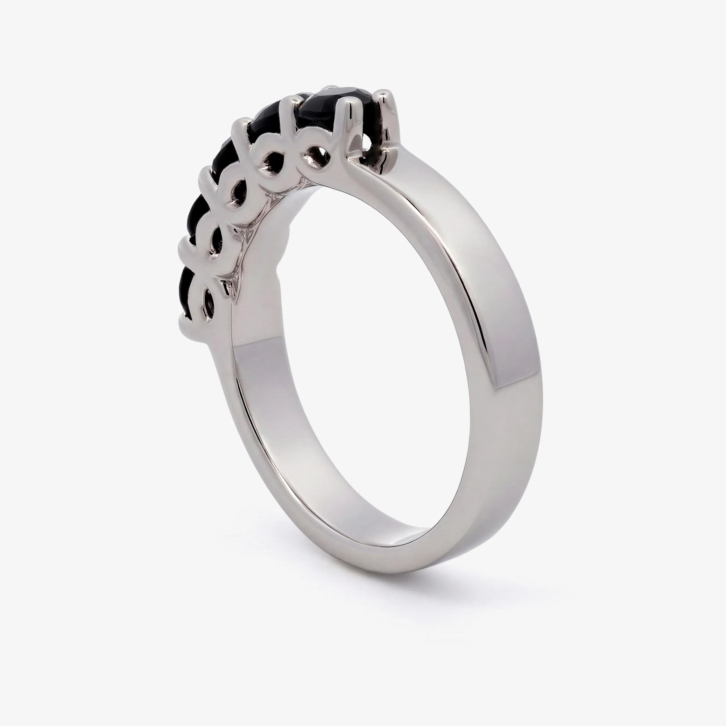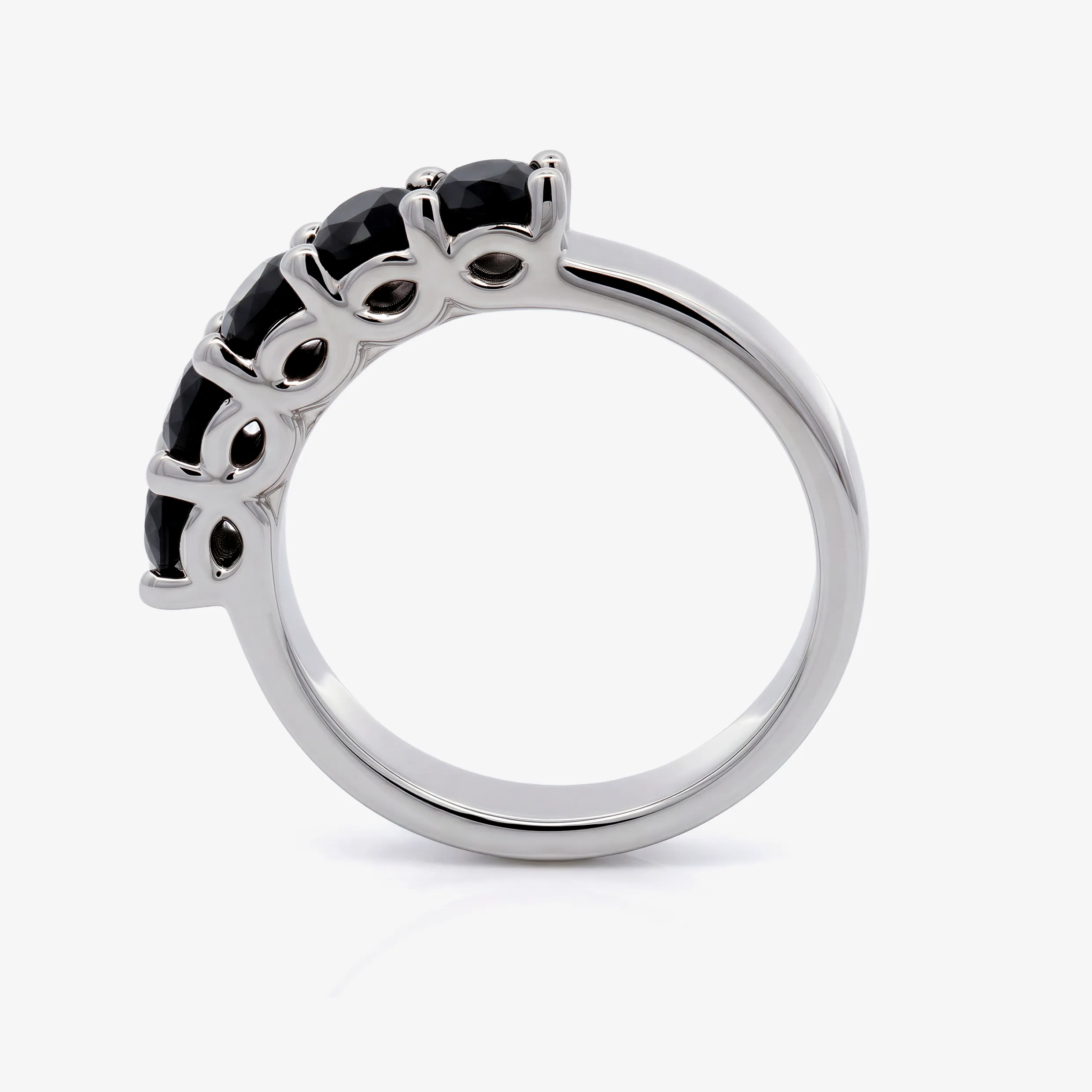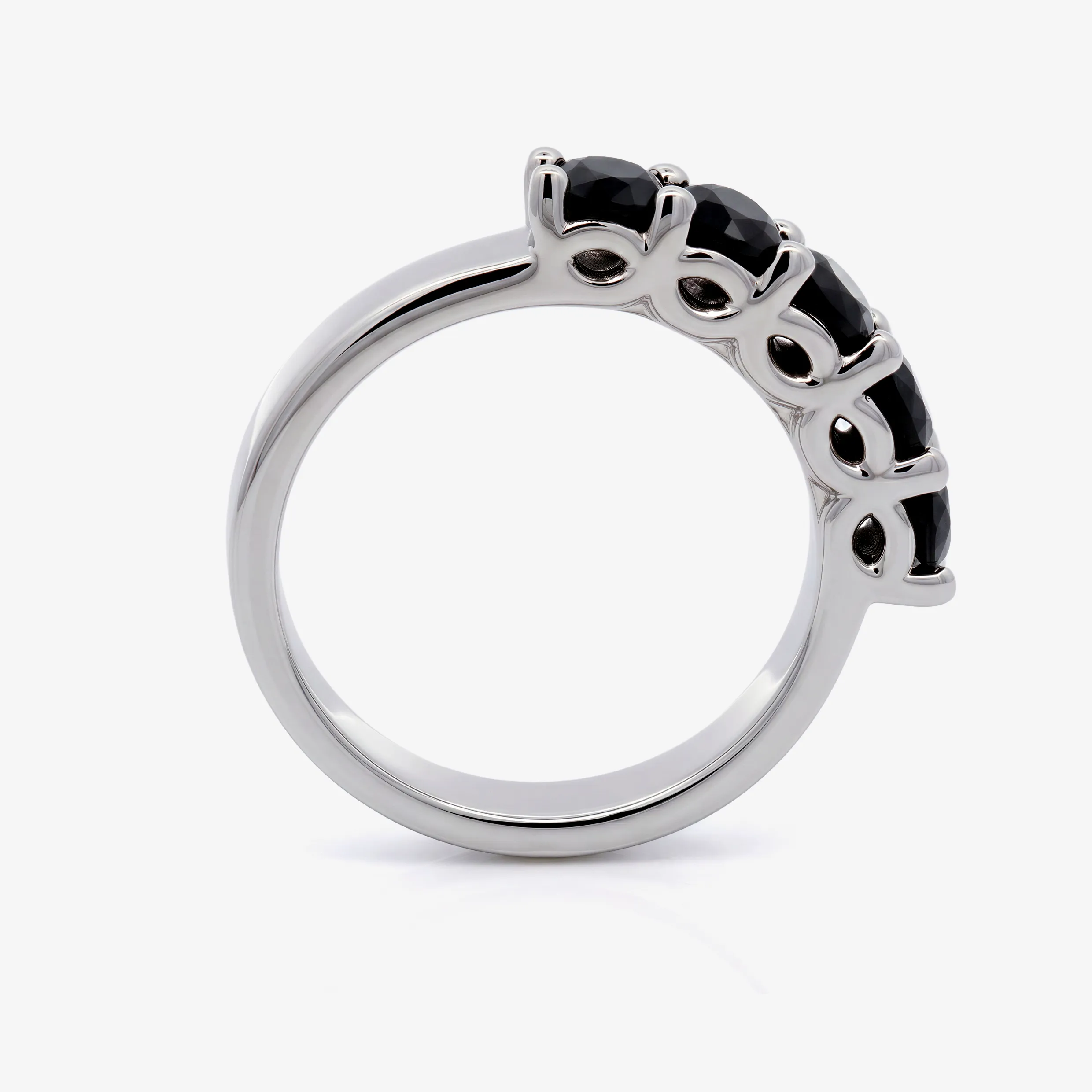 Elevate your style with this radiant multistone ring, expertly crafted in lustrous white gold. This ring features a series of round brilliant cut Dark Sapphire, each displaying a captivating black. A sophisticated piece offering a harmonious blend of warmth and brilliance.
