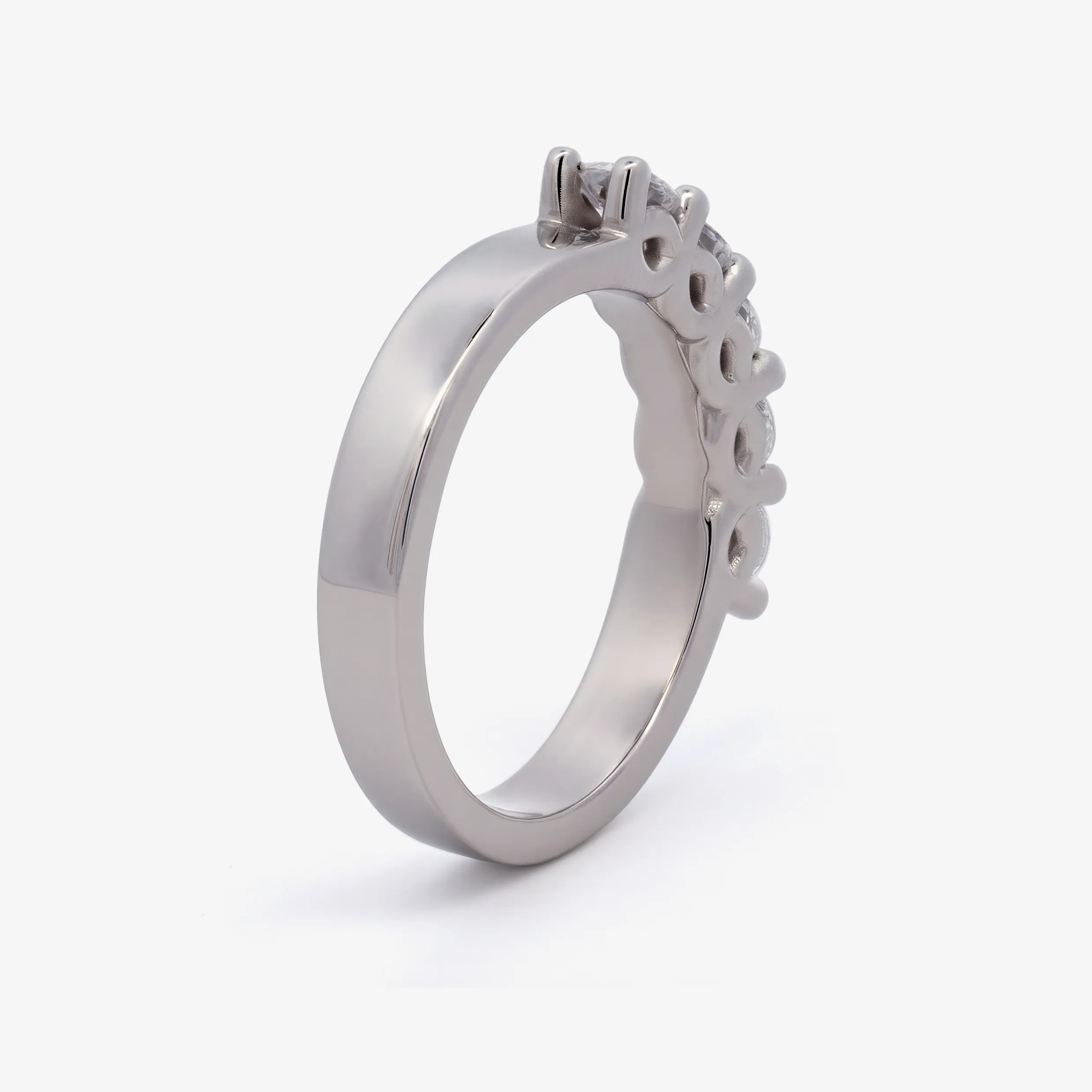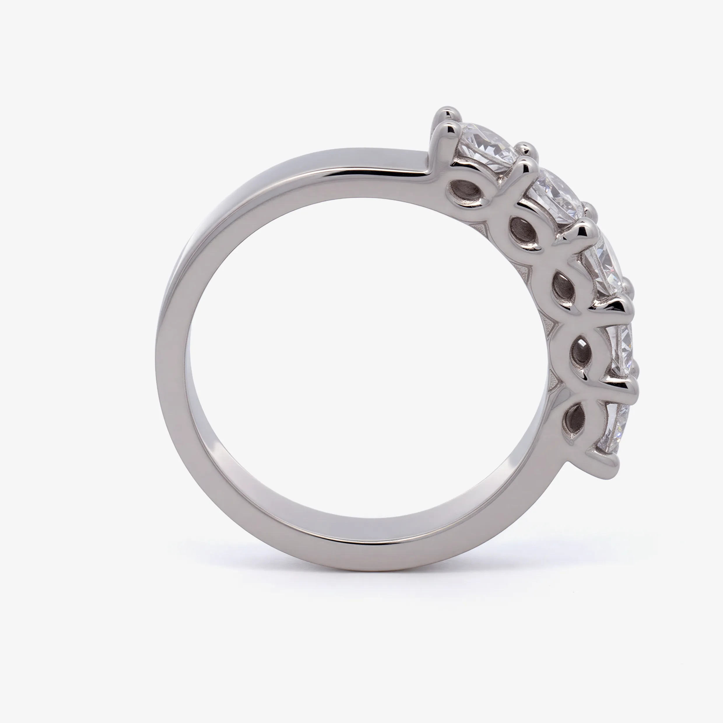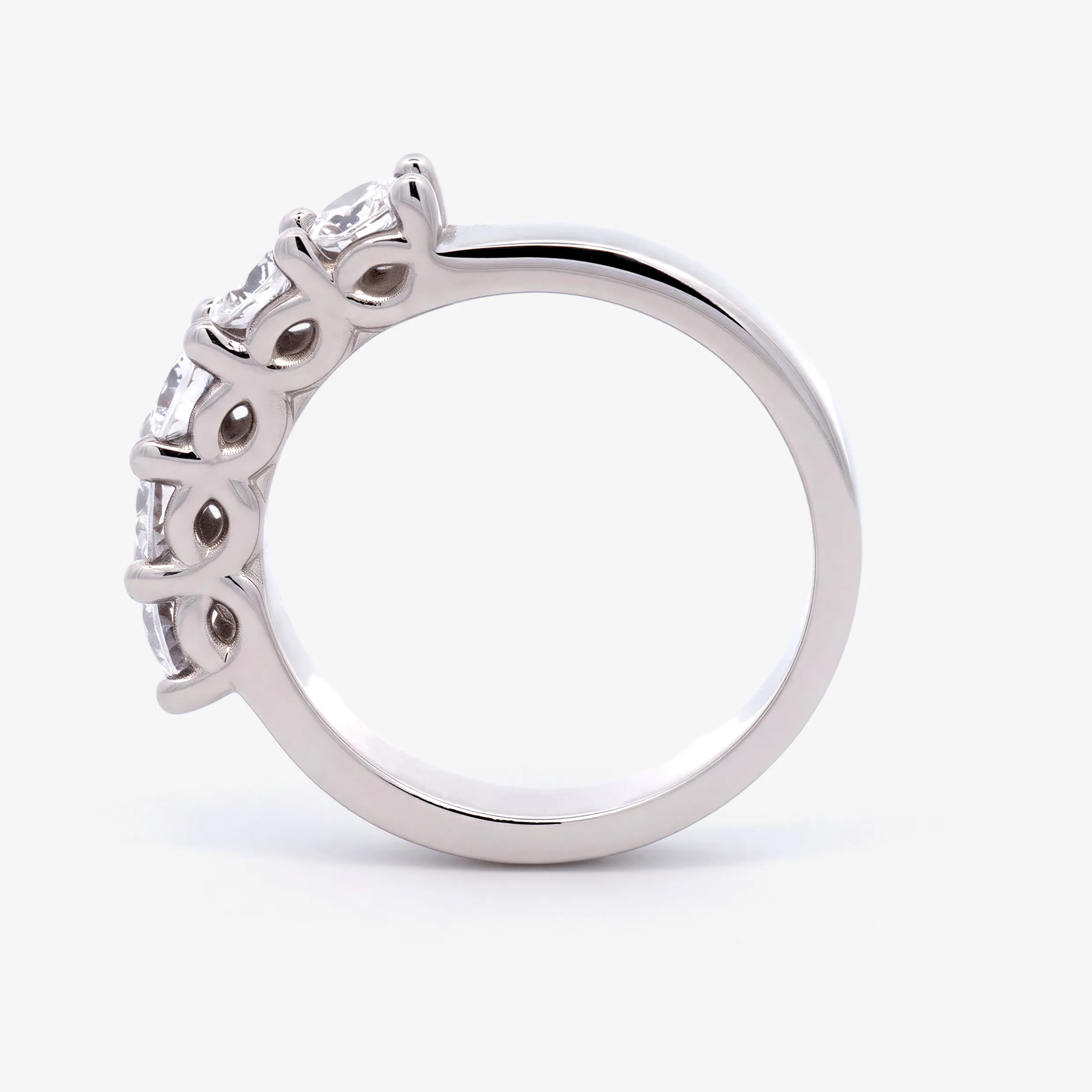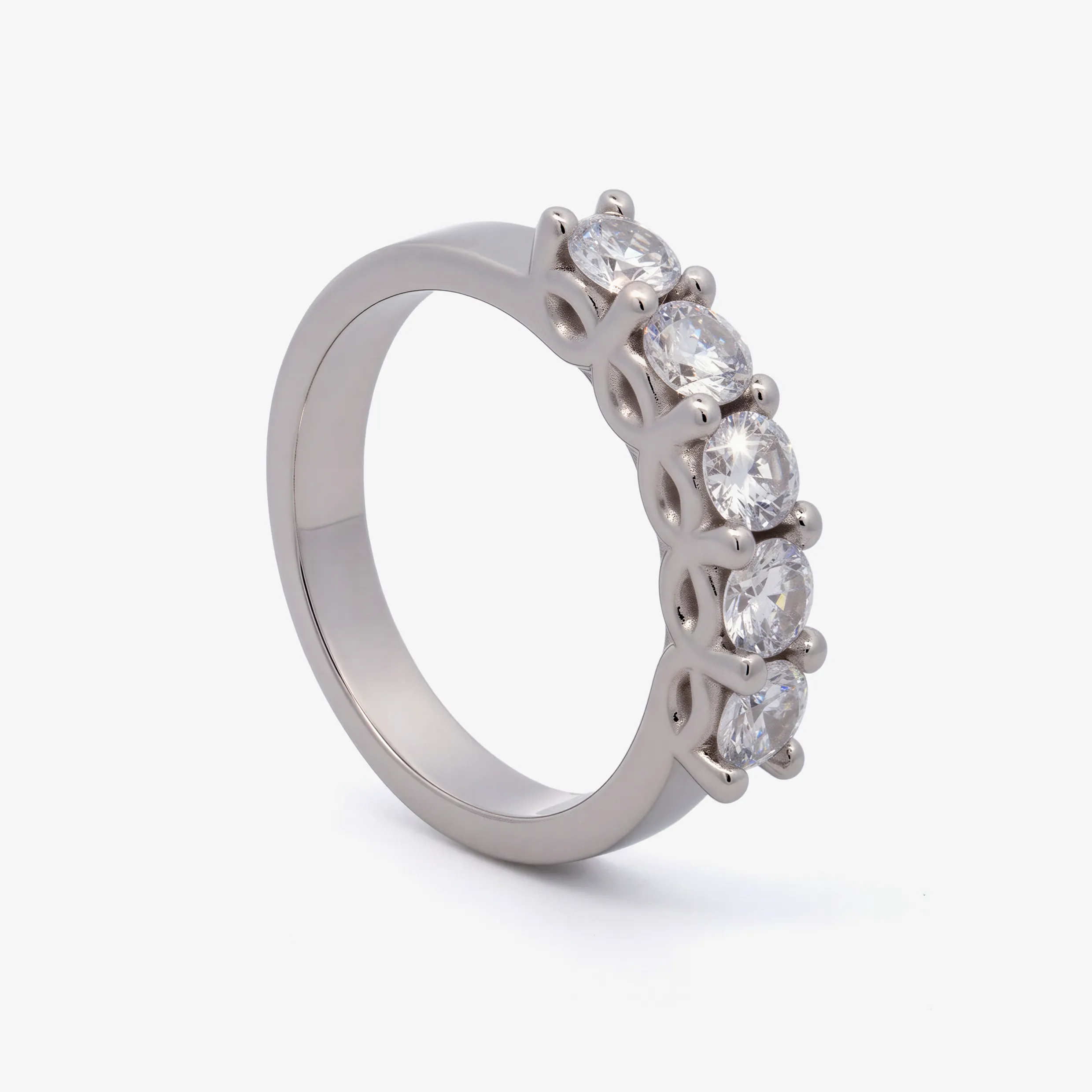 Elevate your style with this radiant multistone ring, expertly crafted in lustrous white gold. This ring features a series of round brilliant cut American Diamond, each displaying a captivating white. A sophisticated piece offering a harmonious blend of warmth and brilliance.