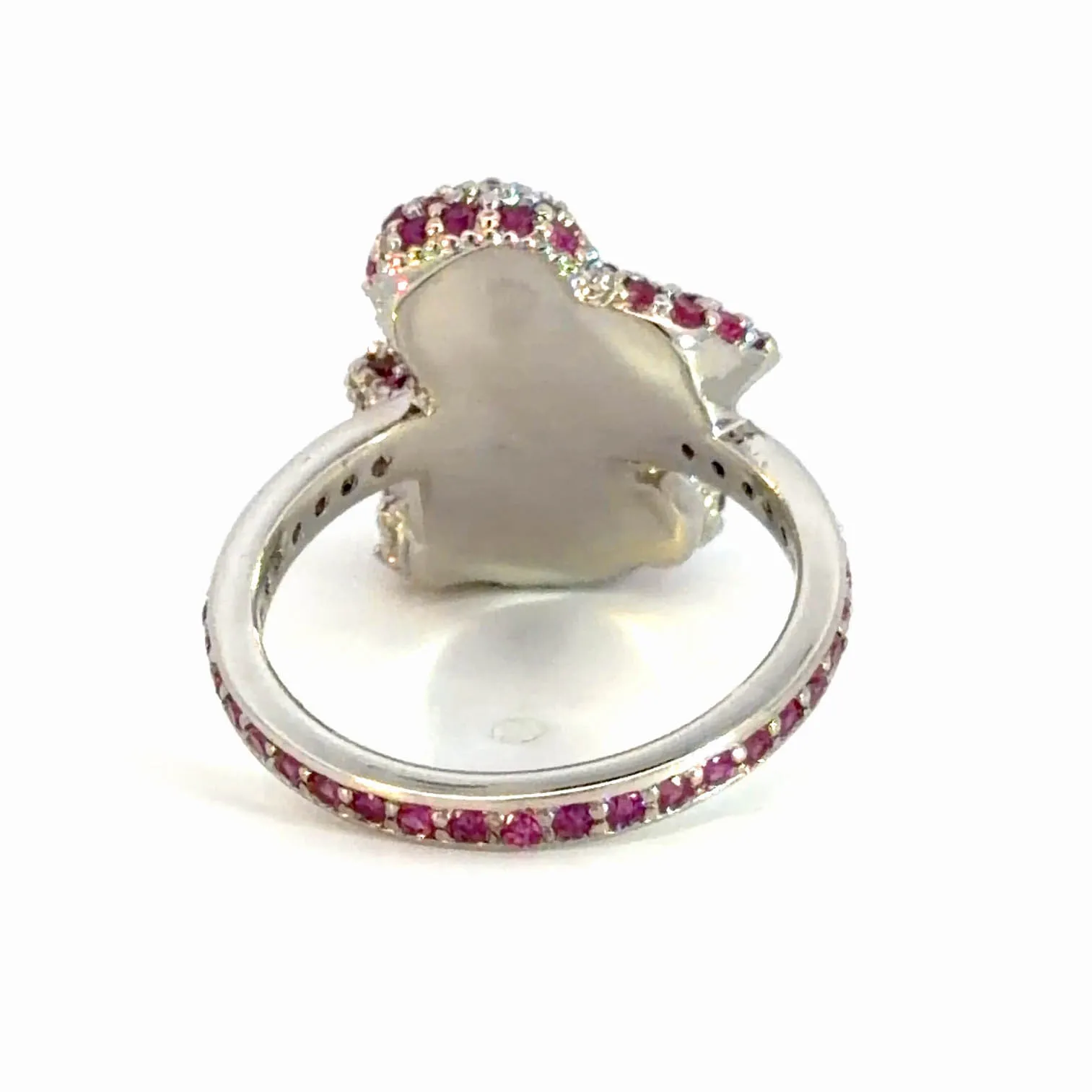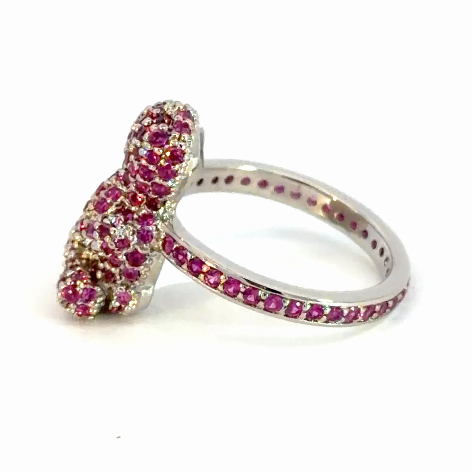 Exude sophistication with this stunning silver cocktail ring. The mesmerizing design features a collection of round brilliant cut rubies, meticulously arranged to create an unforgettable look. This ring is a testament to exceptional craftsmanship, ideal for adding a touch of elegance to any ensemble.
